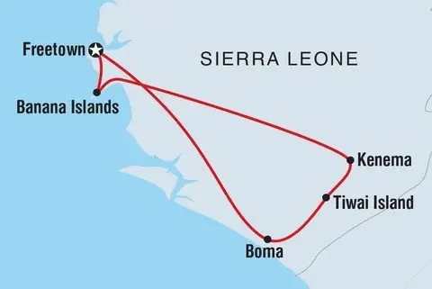 Discover the wild beauty, rich culture and complex history of Sierra Leone on this eight day adventure. Hear traditional stories around the campfire in the Boma Community Village, learn about Sierra Leone’s slave trade history in Freetown and sift for diamonds in Kenema. Unwind on the beaches of the Banana Islands, cruise along the Moa River and set off on a jungle walk through the UNESCO World Heritage site of Tiwai Island.
